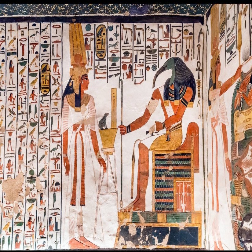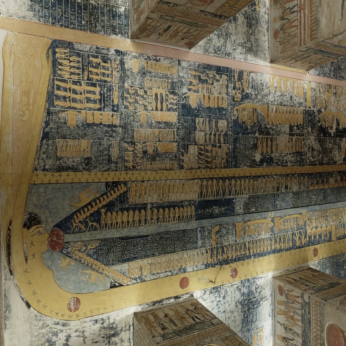 🔻ネフェタリ王妃の墓では墓室全体の天井に広がる星空はヌイトを象徴しています。
