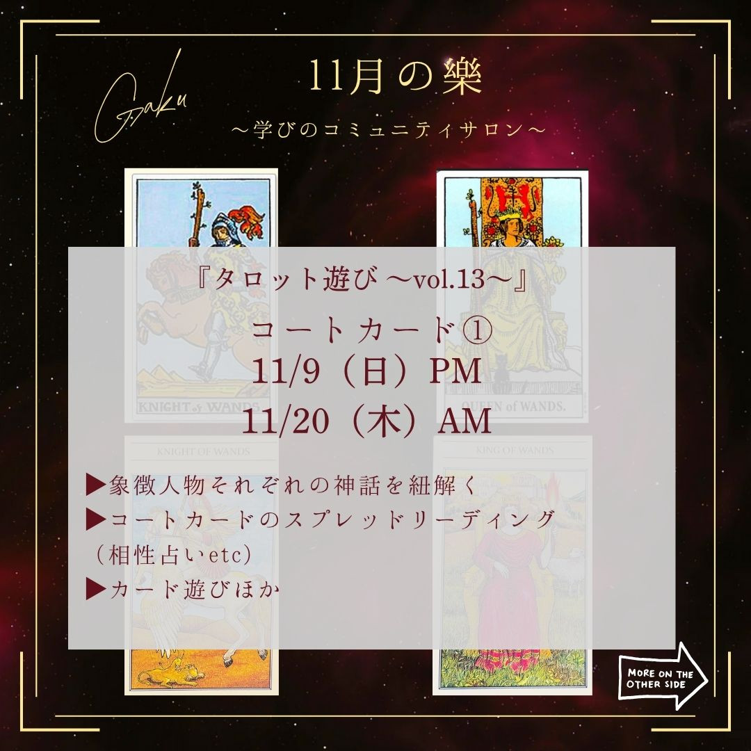 次回の樂gakuは、『タロット遊び(コートカード編)〜vol.14』です。